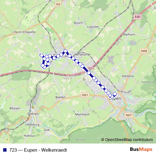 Bus 723 - Eupen - Welkenraedt: Full Schedule in Welkenraedt