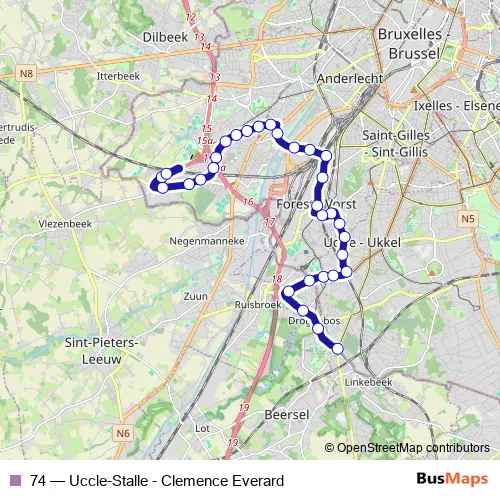 Bus 74 - Uccle-Stalle - Clemence Everard in Brussels: Stops & Timetable