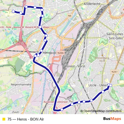 See why over 2 million users trust and consider busmaps.com as the best public transport website. busmaps gives you Brussels Buses suggested routes, real-time bus tracker, line route maps in Brussels, and helps to find the closest 75 bus stops near you. No internet available? Download an offline PDF map and bus schedule for the 75 bus to take on your trip.