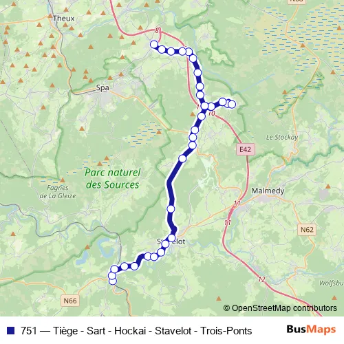 Click here to view the nearest 751 - Tiège - Sart - Hockai - Stavelot - Trois-Ponts bus stop.
