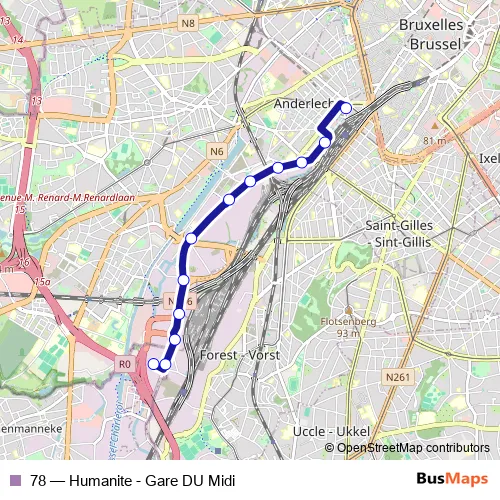 Bus 78 - Humanite - Gare DU Midi: Full Schedule in Brussels