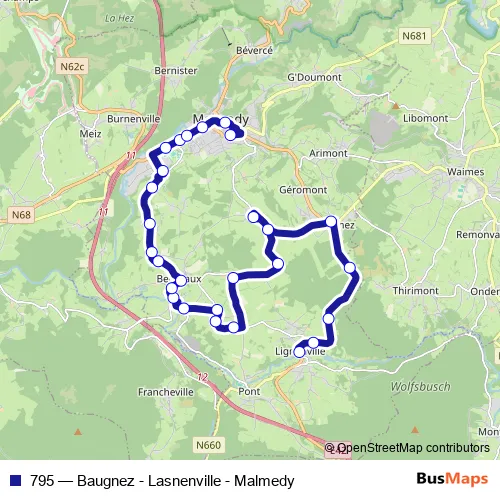 Bus 795 - Baugnez - Lasnenville - Malmedy Schedule in Bellevaux-Ligneuville