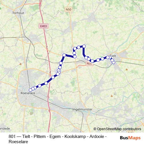 Click here to view the nearest 801 - Tielt - Pittem - Egem - Koolskamp - Ardooie - Roeselare bus stop.