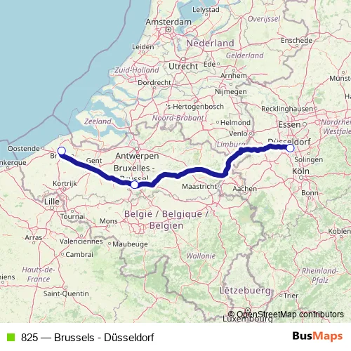 Click here to view the nearest 825 - Brussels - Düsseldorf bus stop.