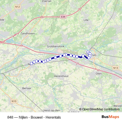 Click here to view the nearest 848 - Nijlen - Bouwel - Herentals bus stop.