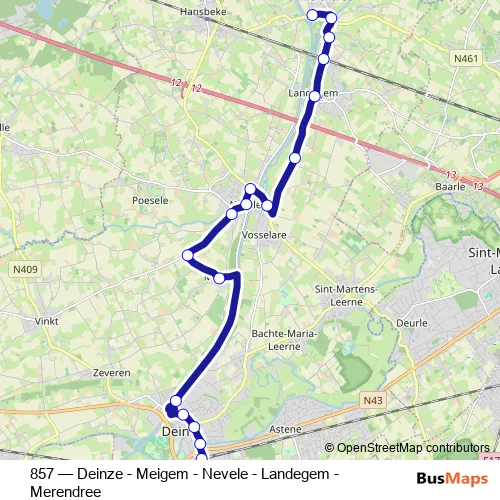Click here to view the nearest 857 - Deinze - Meigem - Nevele - Landegem - Merendree bus stop.