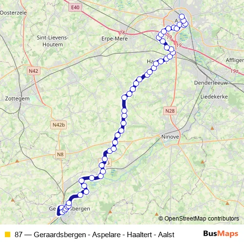 Bus 87 - Geraardsbergen - Aspelare - Haaltert - Aalst: Full Schedule in Aalst