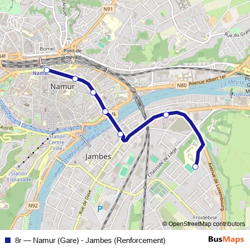 Bus 8r - Namur (Gare) - Jambes (Renforcement) in Namur: Stops & Timetable