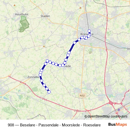 Click here to view the nearest 908 - Beselare - Passendale - Moorslede - Roeselare bus stop.