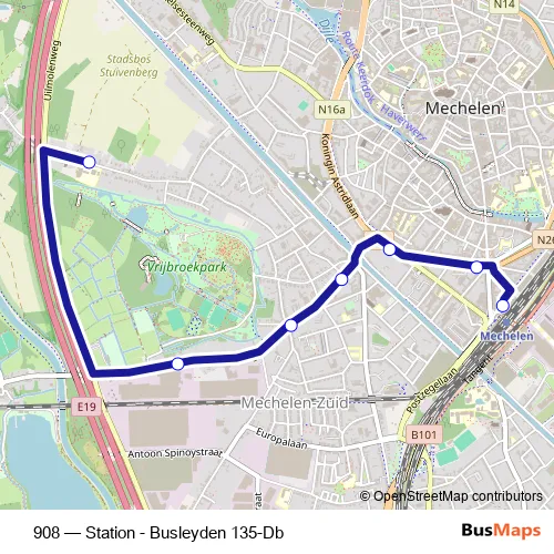 See why over 2 million users trust and consider busmaps.com as the best public transport website. busmaps gives you Mechelen Buses suggested routes, real-time bus tracker, line route maps in Mechelen, and helps to find the closest 908 bus stops near you. No internet available? Download an offline PDF map and bus schedule for the 908 bus to take on your trip.