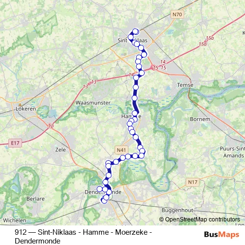 Click here to view the nearest 912 - Sint-Niklaas - Hamme - Moerzeke - Dendermonde bus stop.