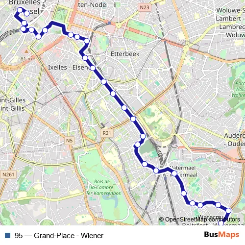 See why over 2 million users trust and consider busmaps.com as the best public transport website. busmaps gives you Brussels Buses suggested routes, real-time bus tracker, line route maps in Brussels, and helps to find the closest 95 bus stops near you. No internet available? Download an offline PDF map and bus schedule for the 95 bus to take on your trip.