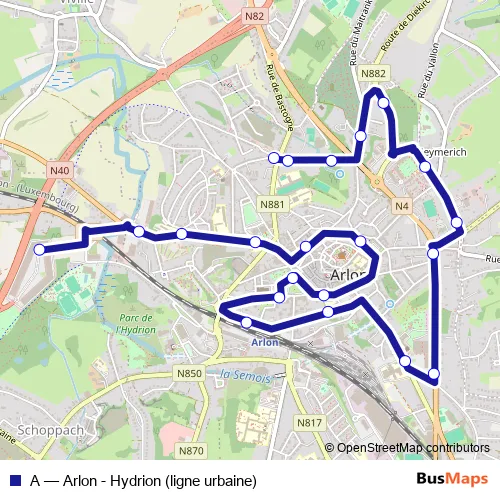 Bus A - Arlon - Hydrion (ligne urbaine): Full Schedule in Redange-sur-Attert