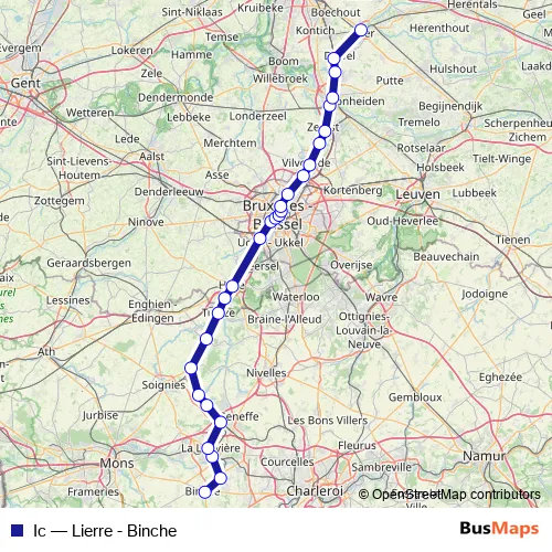 The first stop of the Ic rail route is Binche and the last stop is Lierre / Lier. Ic (Lierre - Binche) is operational during everyday.