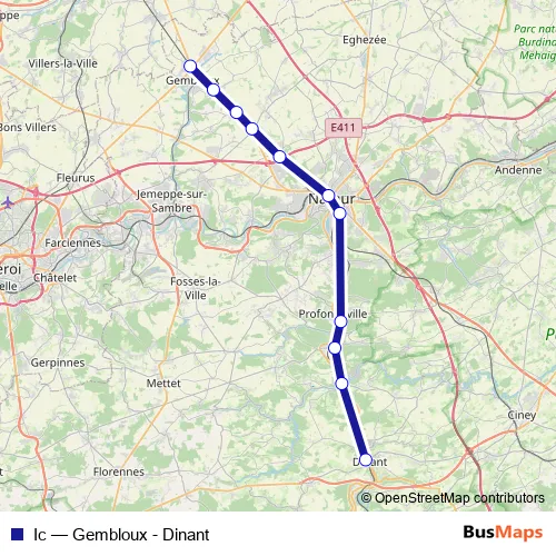 The first stop of the Ic rail route is Dinant and the last stop is Gembloux. Ic (Gembloux - Dinant) is operational during on weekends.