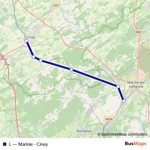 Ciney. L (Marloie - Ciney) is operational during everyday.