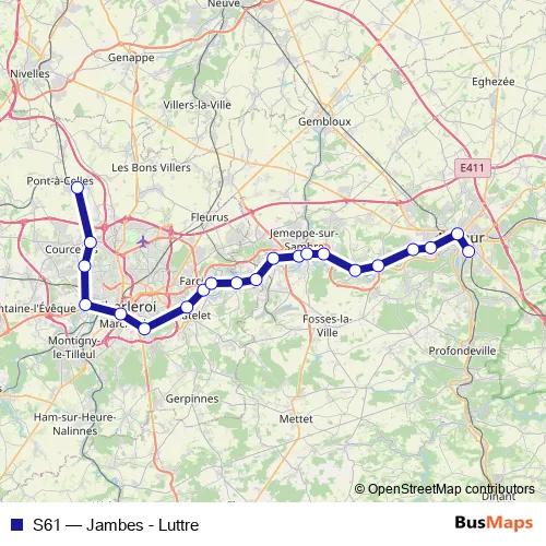 Click here to view the nearest S61 - Jambes - Luttre rail stop.