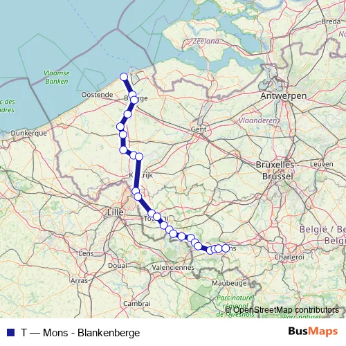 Mons / Bergen. T (Mons - Blankenberge) is operational during on weekends.