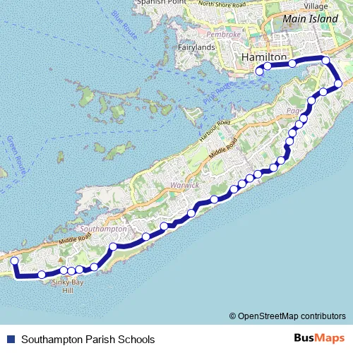 See why over 2 million users trust and consider busmaps.com as the best public transport website. busmaps gives you Hamilton Buses suggested routes, real-time bus tracker, line route maps in Hamilton, and helps to find the closest Southampton Parish Schools bus stops near you. No internet available? Download an offline PDF map and bus schedule for the Southampton Parish Schools bus to take on your trip.