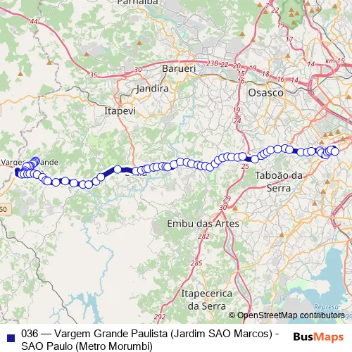 Bus 036 - Vargem Grande Paulista (Jardim SAO Marcos) - SAO Paulo (Metro Morumbi) Schedule in Taboao da Serra