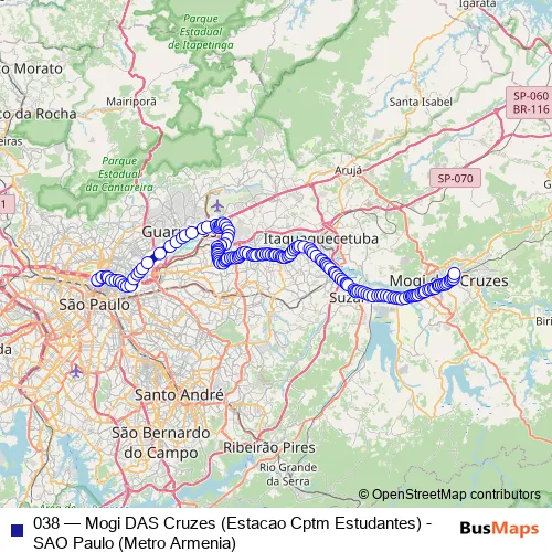 Click here to view the nearest 038 - Mogi DAS Cruzes (Estacao Cptm Estudantes) - SAO Paulo (Metro Armenia) bus stop.