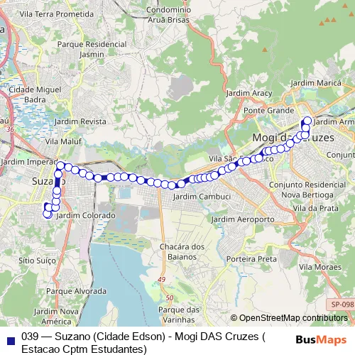 Click here to view the nearest 039 - Suzano (Cidade Edson) - Mogi DAS Cruzes (Estacao Cptm Estudantes) bus stop.