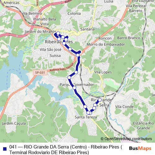 Click here to view the nearest 041 - RIO Grande DA Serra (Centro) - Ribeirao Pires (Terminal Rodoviario DE Ribeirao Pires) bus stop.