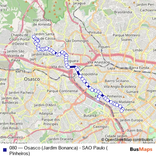 Bus 080 - Osasco (Jardim Bonanca) - SAO Paulo (Pinheiros): Full Schedule in Carapicuiba