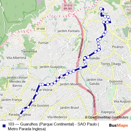 Click here to view the nearest 103 - Guarulhos (Parque Continental) - SAO Paulo (Metro Parada Inglesa) bus stop.