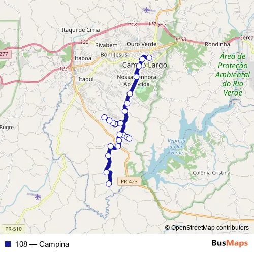 See why over 2 million users trust and consider busmaps.com as the best public transport website. busmaps gives you Campo Largo Buses suggested routes, real-time bus tracker, line route maps in Campo Largo, and helps to find the closest 108 bus stops near you. No internet available? Download an offline PDF map and bus schedule for the 108 bus to take on your trip.