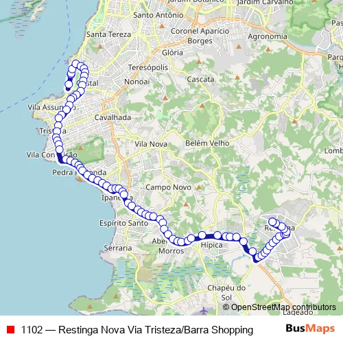 Bus 1102 - Restinga Nova Via Tristeza/Barra Shopping in Porto Alegre: Stops & Timetable