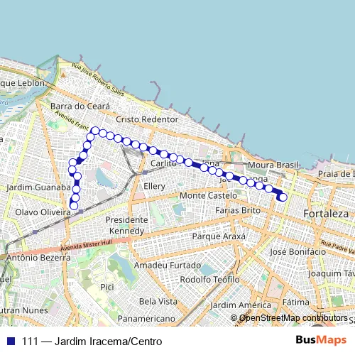 See why over 2 million users trust and consider busmaps.com as the best public transport website. busmaps gives you Fortaleza Buses suggested routes, real-time bus tracker, line route maps in Fortaleza, and helps to find the closest 111 bus stops near you. No internet available? Download an offline PDF map and bus schedule for the 111 bus to take on your trip.