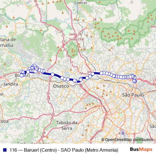 Bus 116 - Barueri (Centro) - SAO Paulo (Metro Armenia): Full Schedule in Carapicuiba