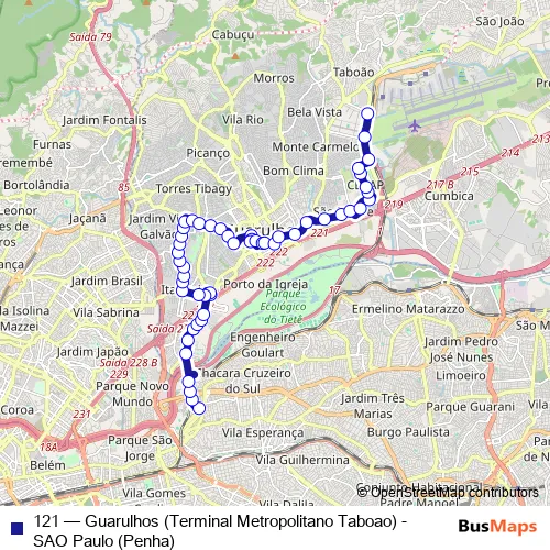 Click here to view the nearest 121 - Guarulhos (Terminal Metropolitano Taboao) - SAO Paulo (Penha) bus stop.