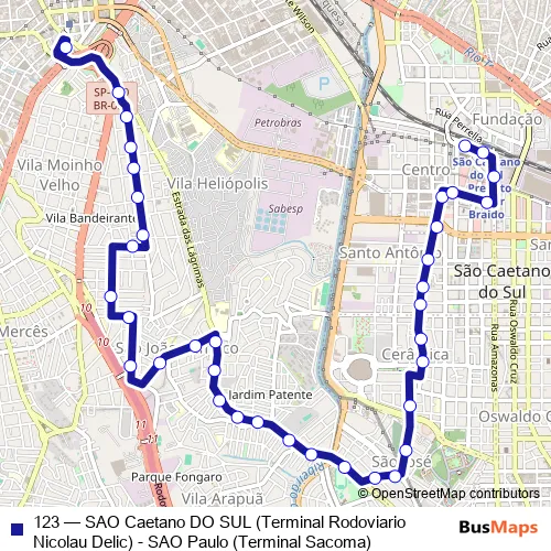 Bus 123 - SAO Caetano DO SUL (Terminal Rodoviario Nicolau Delic) - SAO Paulo (Terminal Sacoma): Full Schedule in Sao Paulo