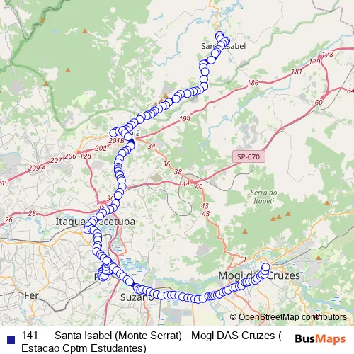 141 Bus - Santa Isabel (Monte Serrat) - Mogi DAS Cruzes (Estacao Cptm Estudantes)