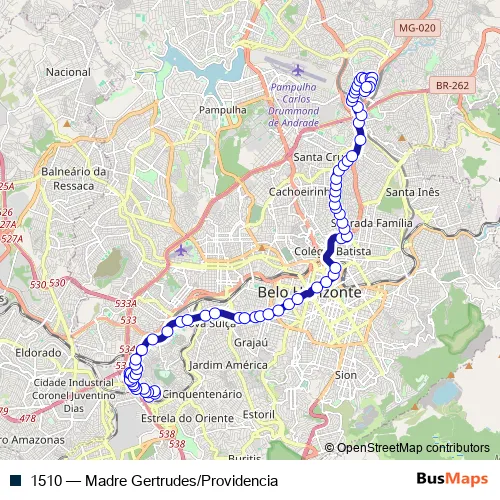 See why over 2 million users trust and consider busmaps.com as the best public transport website. busmaps gives you Belo Horizonte Buses suggested routes, real-time bus tracker, line route maps in Belo Horizonte, and helps to find the closest 1510 bus stops near you. No internet available? Download an offline PDF map and bus schedule for the 1510 bus to take on your trip.