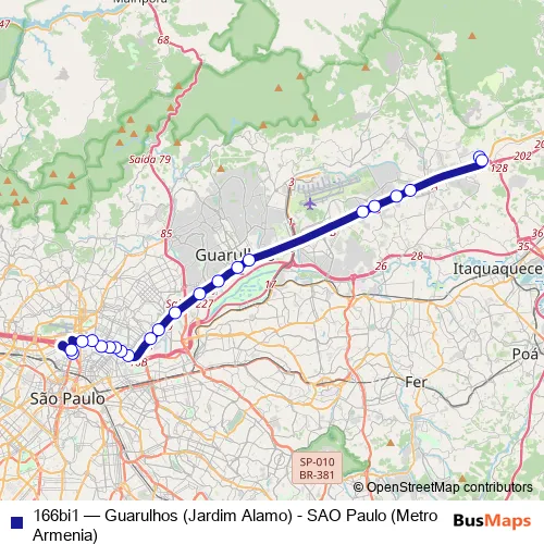 Click here to view the nearest 166bi1 - Guarulhos (Jardim Alamo) - SAO Paulo (Metro Armenia) bus stop.