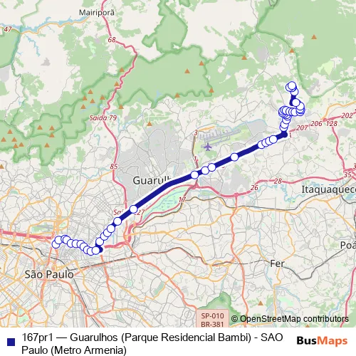 Click here to view the nearest 167pr1 - Guarulhos (Parque Residencial Bambi) - SAO Paulo (Metro Armenia) bus stop.