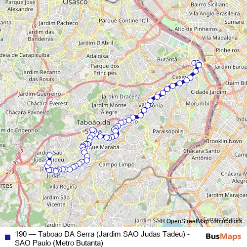 Click here to view the nearest 190 - Taboao DA Serra (Jardim SAO Judas Tadeu) - SAO Paulo (Metro Butanta) bus stop.