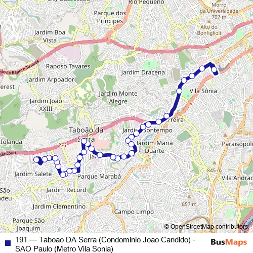 Click here to view the nearest 191 - Taboao DA Serra (Condominio Joao Candido) - SAO Paulo (Metro Vila Sonia) bus stop.