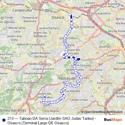 See why over 2 million users trust and consider busmaps.com as the best public transport website. busmaps gives you Taboao da Serra Buses suggested routes, real-time bus tracker, line route maps in Taboao da Serra, and helps to find the closest 213 bus stops near you. No internet available? Download an offline PDF map and bus schedule for the 213 bus to take on your trip.