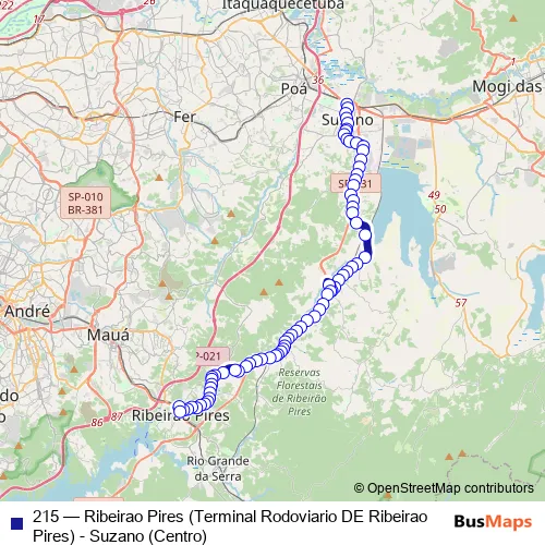 Bus 215 - Ribeirao Pires (Terminal Rodoviario DE Ribeirao Pires) - Suzano (Centro): Full Schedule in Maua