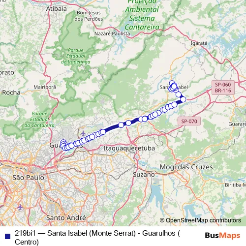 Bus 219bi1 - Santa Isabel (Monte Serrat) - Guarulhos (Centro) Schedule in Aruja