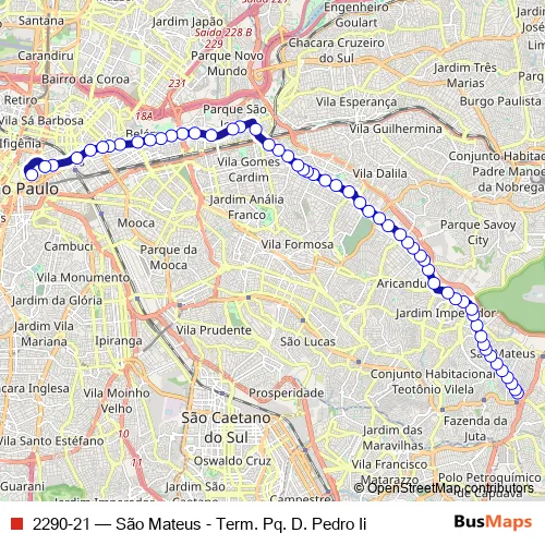 Click here to view the nearest 2290-21 - São Mateus - Term. Pq. D. Pedro Ii bus stop.