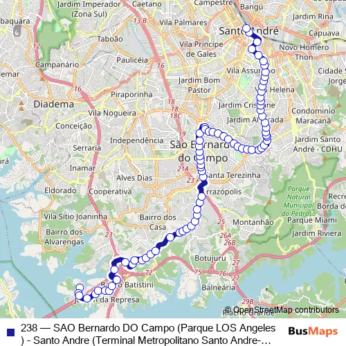 Click here to view the nearest 238 - SAO Bernardo DO Campo (Parque LOS Angeles) - Santo Andre (Terminal Metropolitano Santo Andre-Oeste) bus stop.