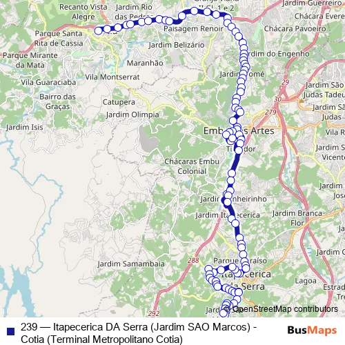 Bus 239 - Itapecerica DA Serra (Jardim SAO Marcos) - Cotia (Terminal Metropolitano Cotia): Full Schedule in Taboao da Serra