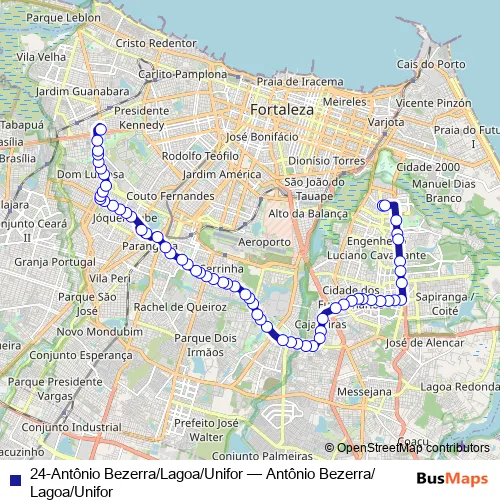 24-Antônio Bezerra/Lagoa/Unifor bus Route Map
