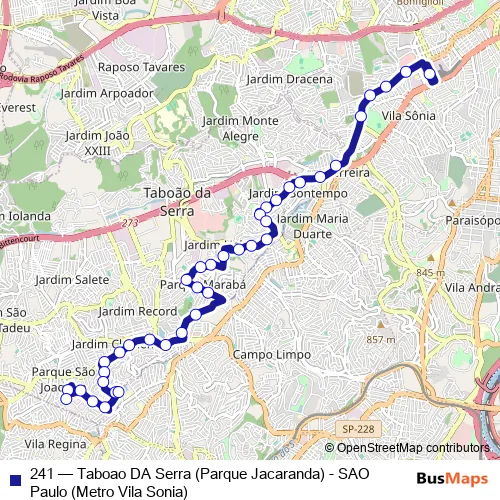 Click here to view the nearest 241 - Taboao DA Serra (Parque Jacaranda) - SAO Paulo (Metro Vila Sonia) bus stop.