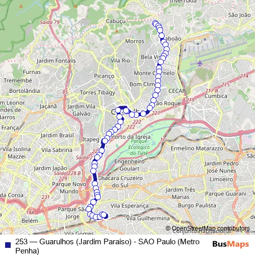 Bus 253 - Guarulhos (Jardim Paraiso) - SAO Paulo (Metro Penha) in Sao Paulo: Stops & Timetable